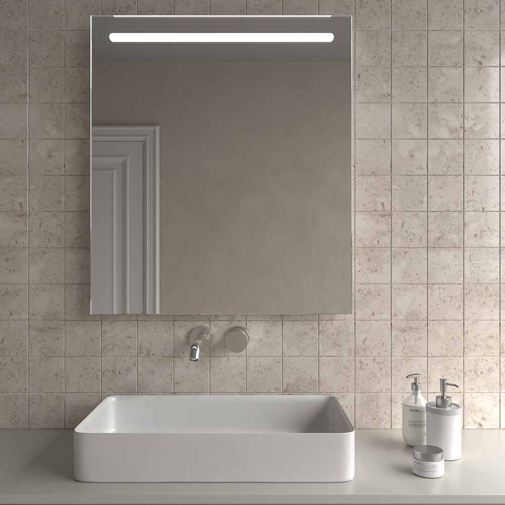 Es un modelo de espejo rectangular con luz led horizontal a un precio muy asequible.