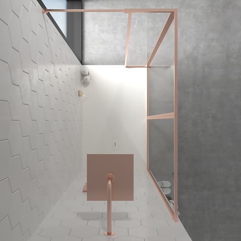 varobath oro rosa 3 cuerpos.jpgFijo de ducha a medida mampara LINE XL con perfilería enmarcada 3 cuerpos – Vidrio 4 MM con tratamiento anti-cal incluido- Brazo sujeción acero inoxidable