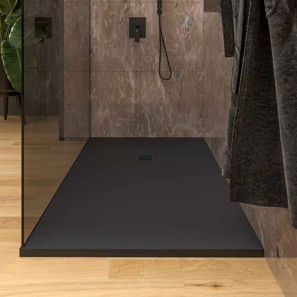 Fijo de ducha mampara ZEN perfil acero inoxidable NEGRO MATE – Vidrio 10 MM Parsol GRIS con tratamiento anti-cal incluido
