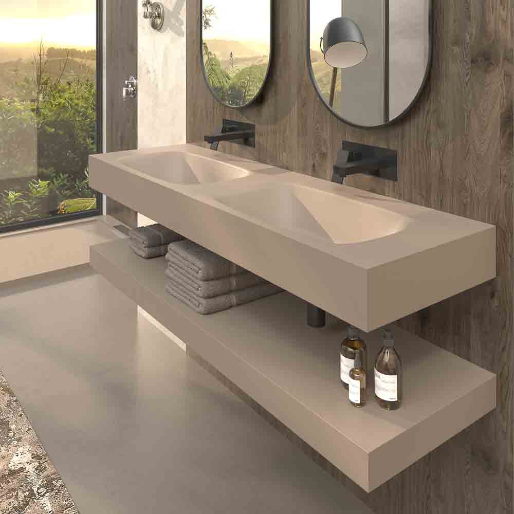 El lavabo suspendido LIDO de 2 senos es un firme candidato a transformar espacios de baño. De anodino a contemporáneo y, además, regalando practicidad.
