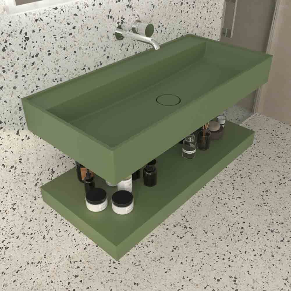 Lavabo suspendido TOTEM un seno centrado SOLID SURFACE Verde Reseda