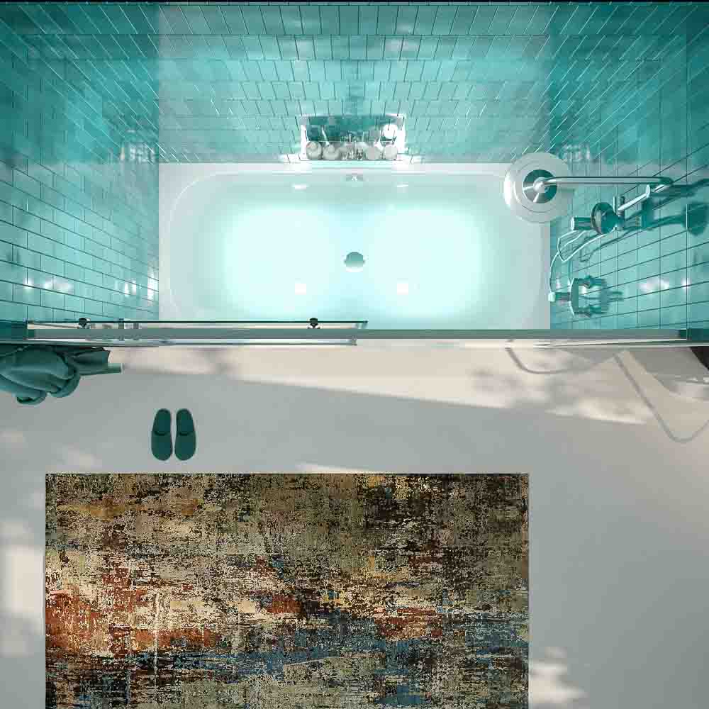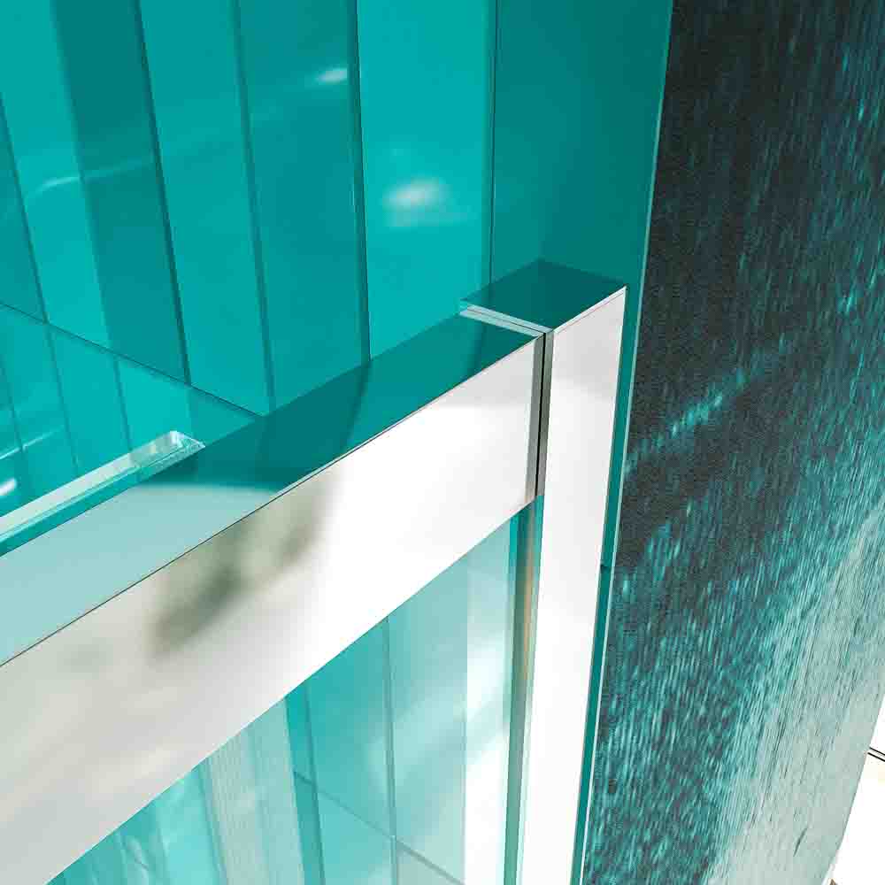 Mampara sin perfil inferior pero con junta de aluminio negro mate para asegurar la estanqueidad.