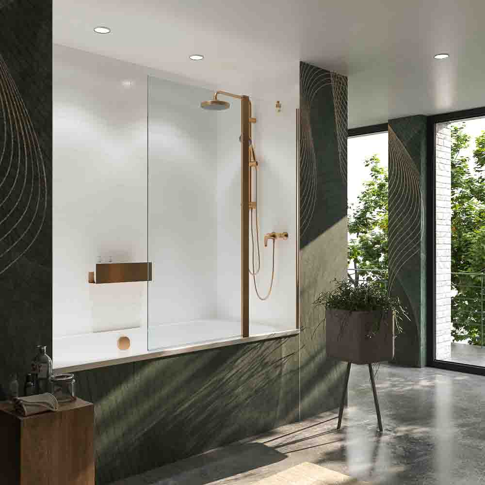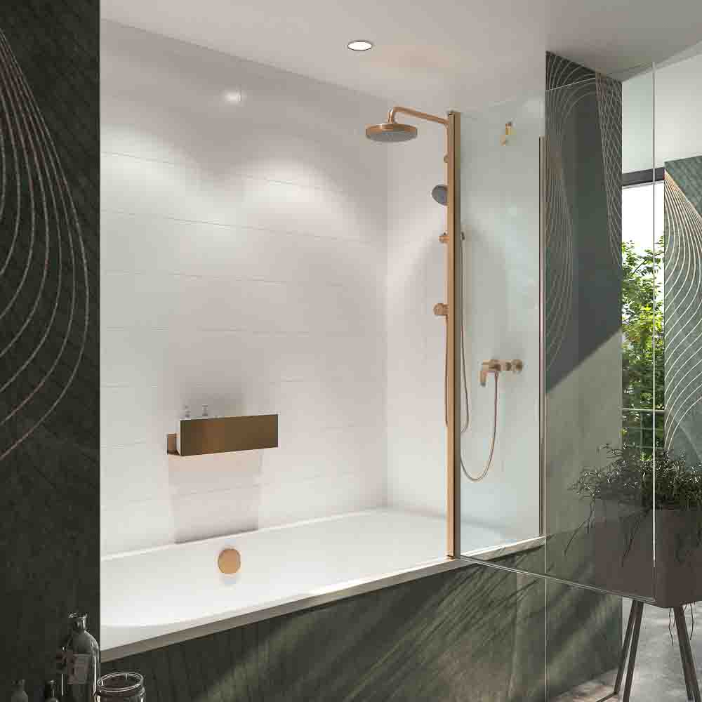 Los principales valores de la mampara de bañera OPEN son: funcionalidad, elegancia, sensación de amplitud, ligereza visual y estanqueidad (aunque sea abierta, sus 1,25 cm de ancho evitan salpicaduras).