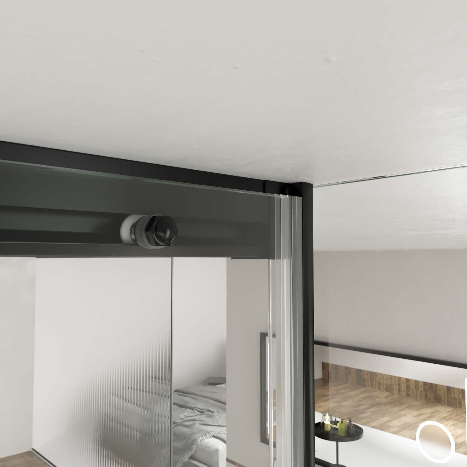 - Esta mampara también dispone de un sofisticado mecanismo liberador de la hoja corredera de la guía inferior para acceder a una limpieza más cómoda