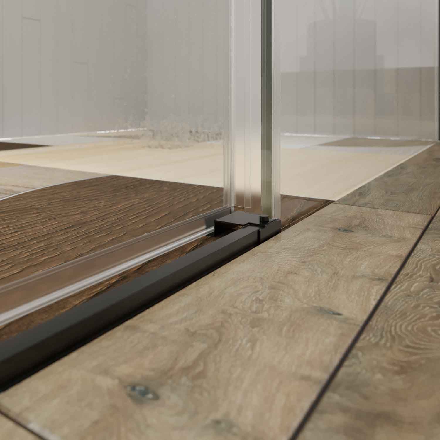 Además es una mampara sin perfil inferior. Esto significa que no necesita estructura o marco en la parte inferior, permitiendo una entrada a la ducha, cómoda y sin escalones. También da un aspecto mas moderno y minimalista.