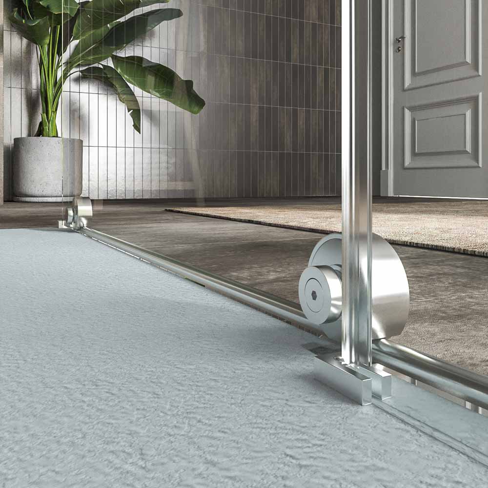 La perfilería y los complementos son de acero inoxidable terrmolacado y el vidrio es de 8 mm. Esto la convierte en una mampara de ducha corredera resistente al desgaste que, además, cuida los detalles de diseño.