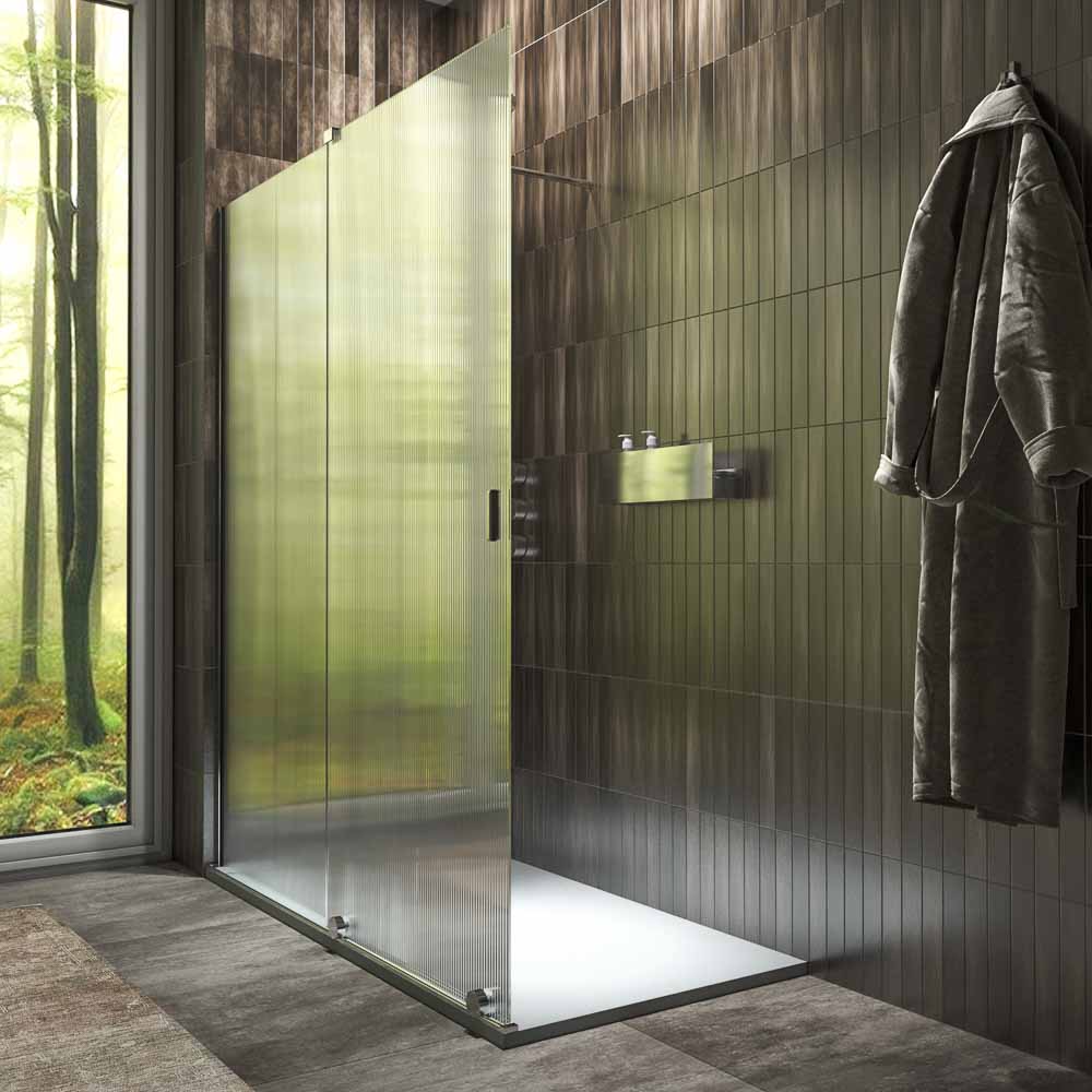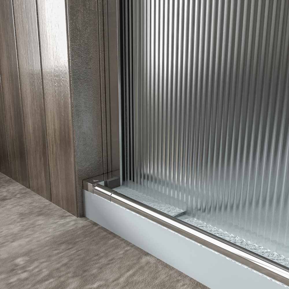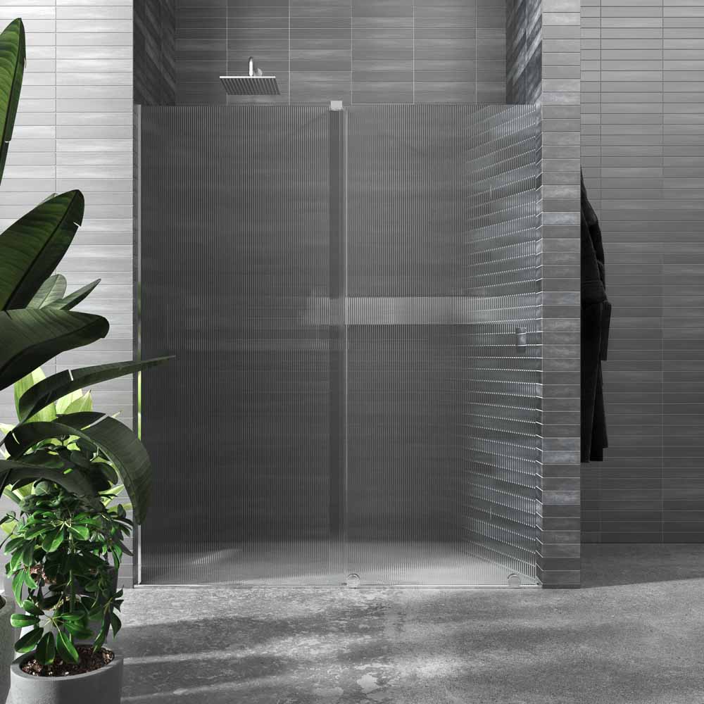 - Compuesta por una hoja fija y una corredera. La hace perfecta para colocar en baños abigarrados ya que admite obstáculos cerca de la parte fija y la puerta no necesita espacio extra para abrirse. Además, deja un amplio acceso.