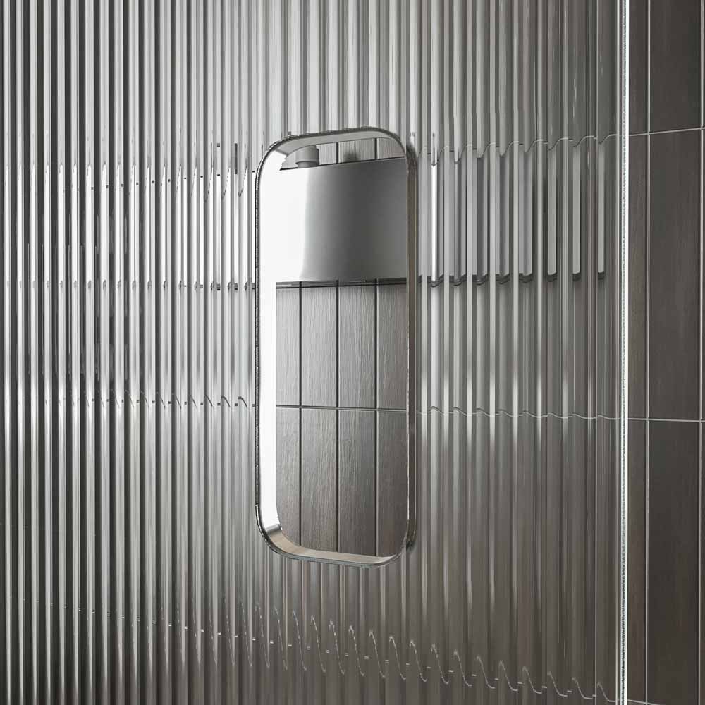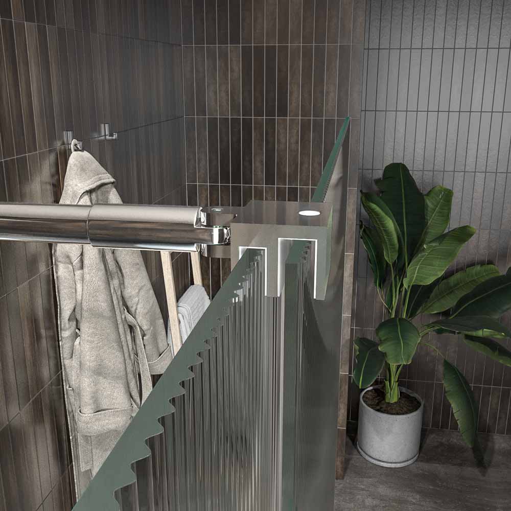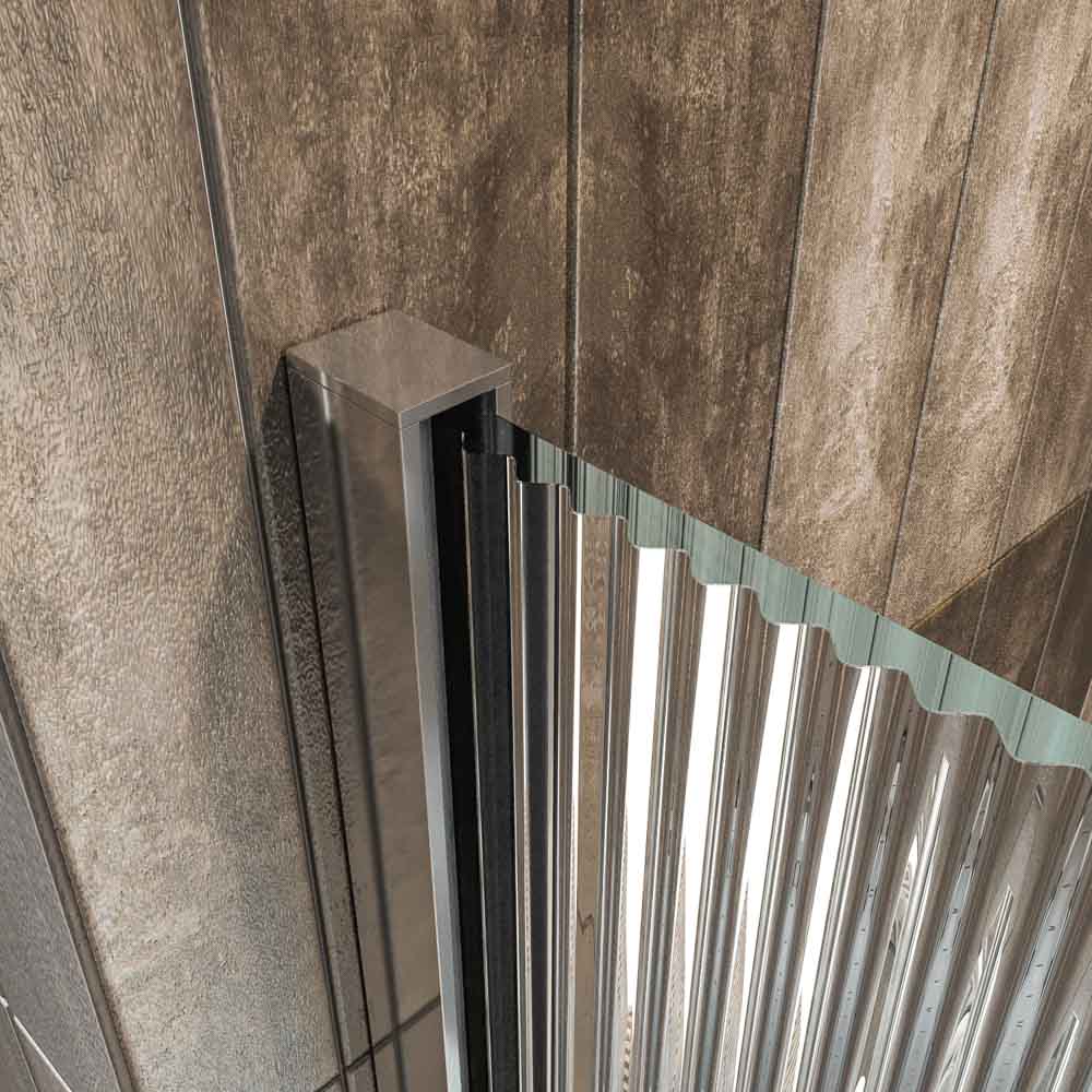 La perfilería y los complementos son de acero inoxidable y el vidrio es de 8 mm. Esto la convierte en una mampara de ducha corredera resistente al desgaste que, además, cuida los detalles de diseño.