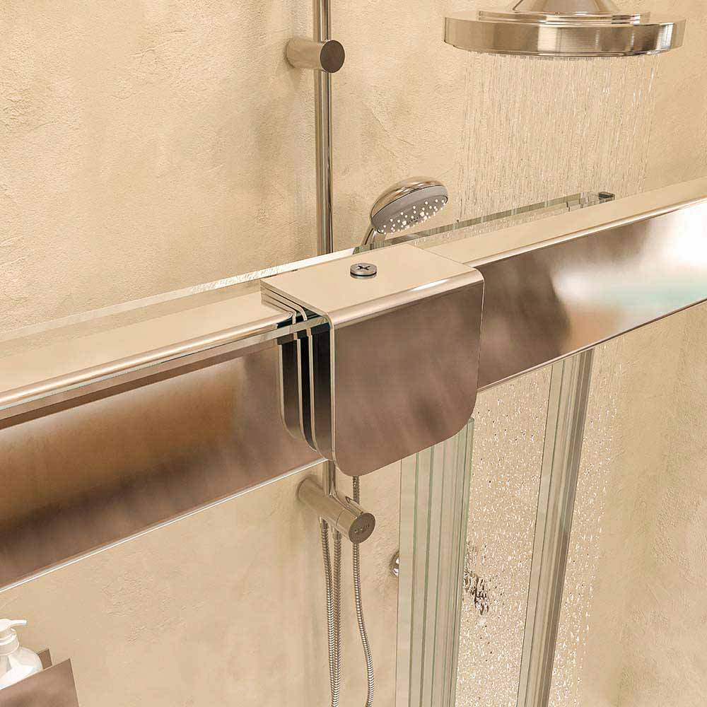 Al estar compuesta por dos hojas correderas y dos fijas, la mampara de ducha frontal AXER es un producto perfectamente viable para cuartos de baño abigarrados, donde la funcionalidad es esencial.
