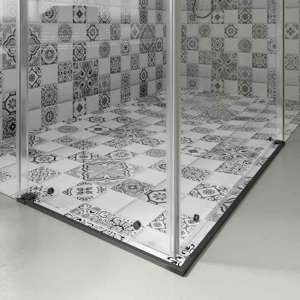 - Carece de perfil inferior, lo que aporta comodidad y seguridad en el acceso, además de resultar más higiénica, puesto que no se acumularán restos de cal en el raíl.