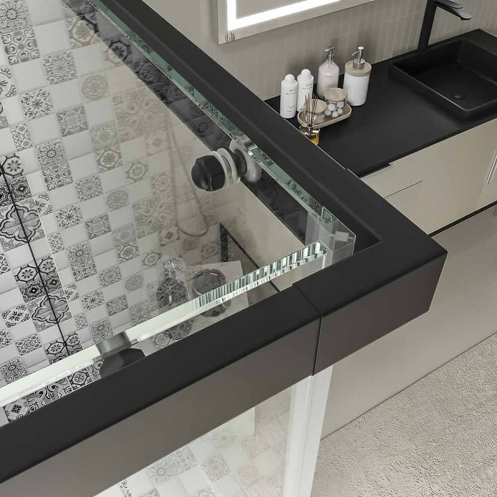 - La perfilería de la mampara de ducha angular AXER es de acero inoxidable acabada en negro mate . Un material de alta resistencia al desgaste y la humedad.