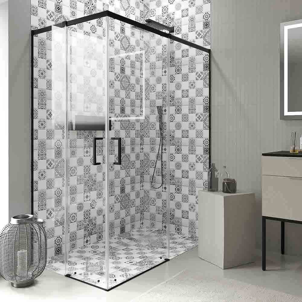 Su doble puerta corredera y sus partes fijas son idóneas para instalar cerca de obstáculos como el wc o el lavabo, puesto que no se precisa de centímetros extra para abrir la mampara de ducha.