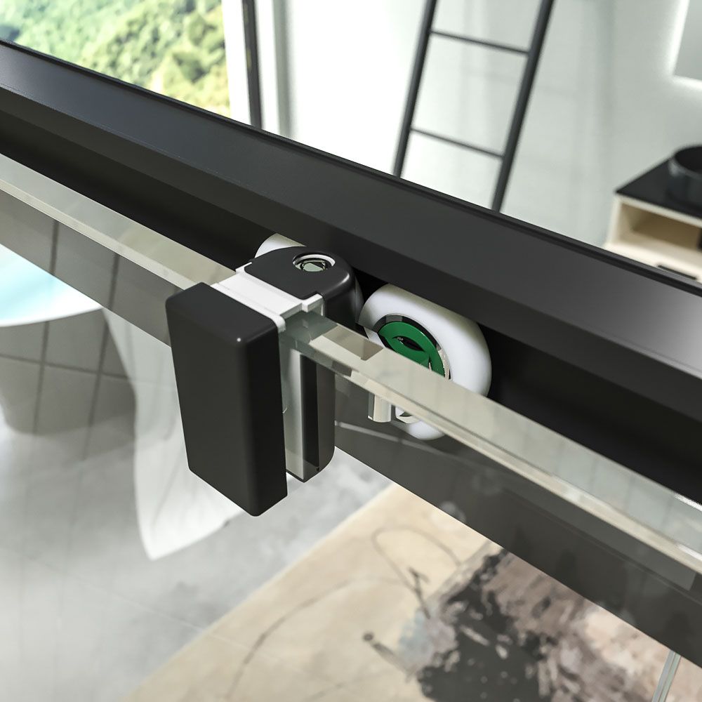 - Mampara de perfiles minimalistas en los laterales y sin perfiles ni railes inferiores