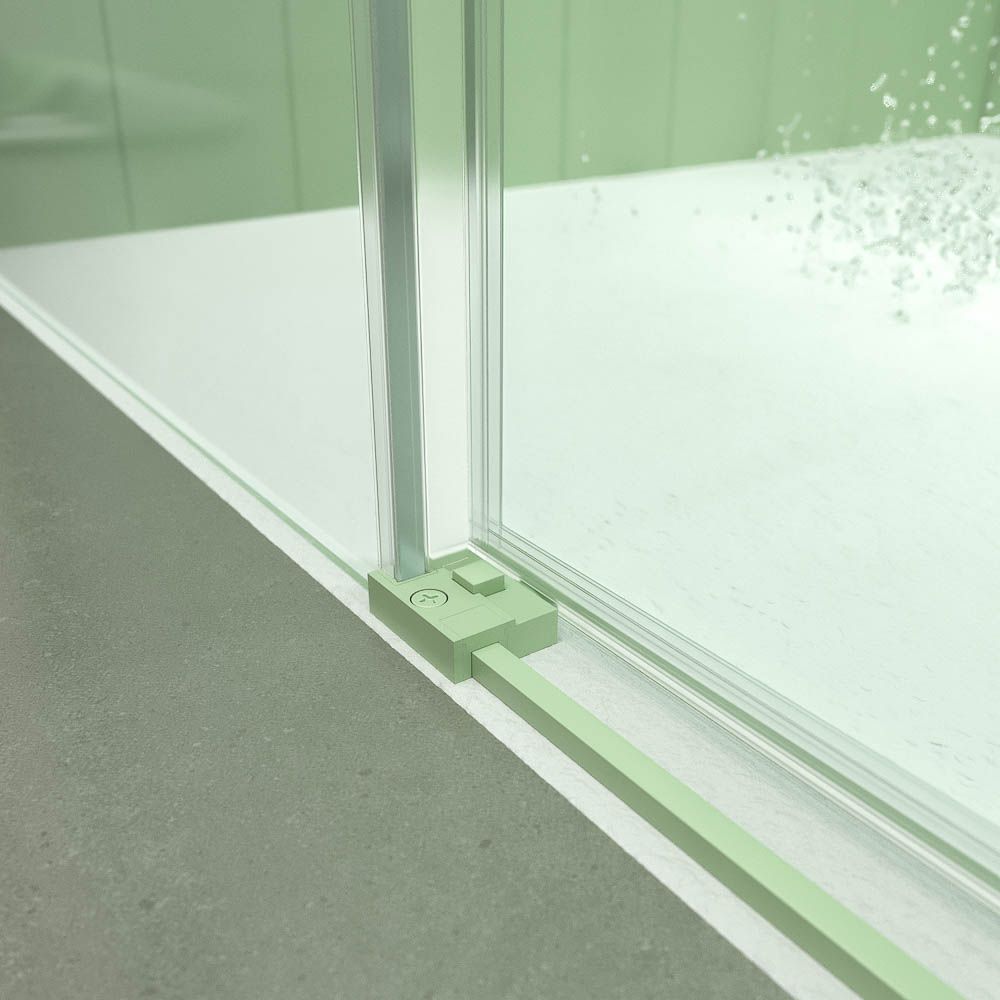 Varobath mampara ducha NEXO cuadrada verde opalo.jpgMampara de ducha cuadrada NEXO apertura angular 2 fijos-2 puertas correderas Acabado VERDE OPALO