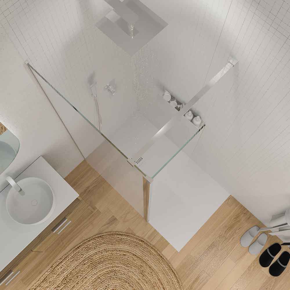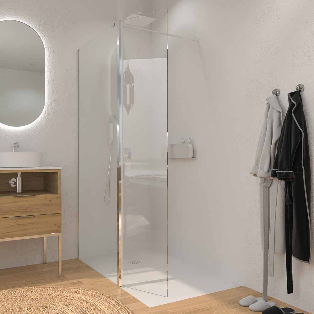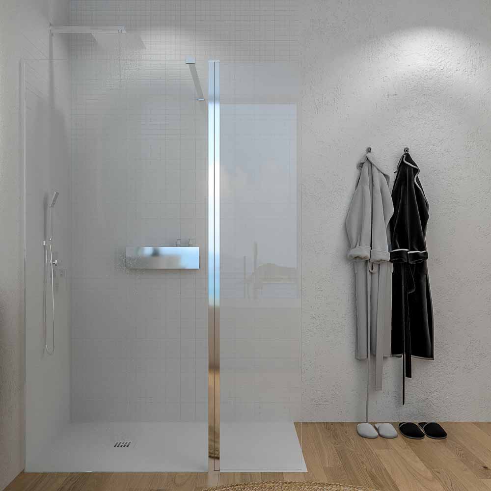 - Walk-in fijo de ducha + puerta abatible. Modelo reversible, no hace falta especificar si el fijo va a izquierdas o derechas.