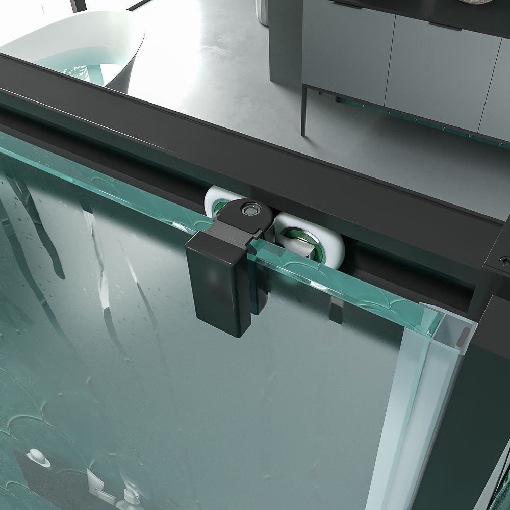 Varobath Basic frontal 1 fijo 1 puerta corredera negro 1.jpgMampara de ducha frontal BASIC 1 fijo -1 puerta corredera. Sin perfil inferior. Con tratamiento anti-cal . Acabado NEGRO MATE.