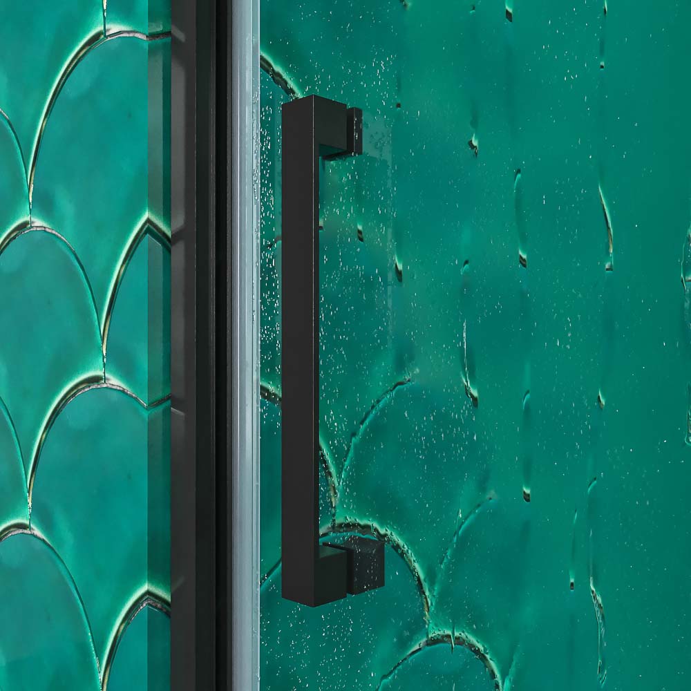 La mampara BASIC en su composición más sencilla, como frontal de dos hojas, una fija y otra móvil, tiene una cómoda apertura corredera y su puerta puede liberarse del carril para limpiar fácilmente la mampara. No obstante, dada su estética súper depurada, no lleva guía inferior y los accesorios como el tirador, van a juego con la perfilería.
