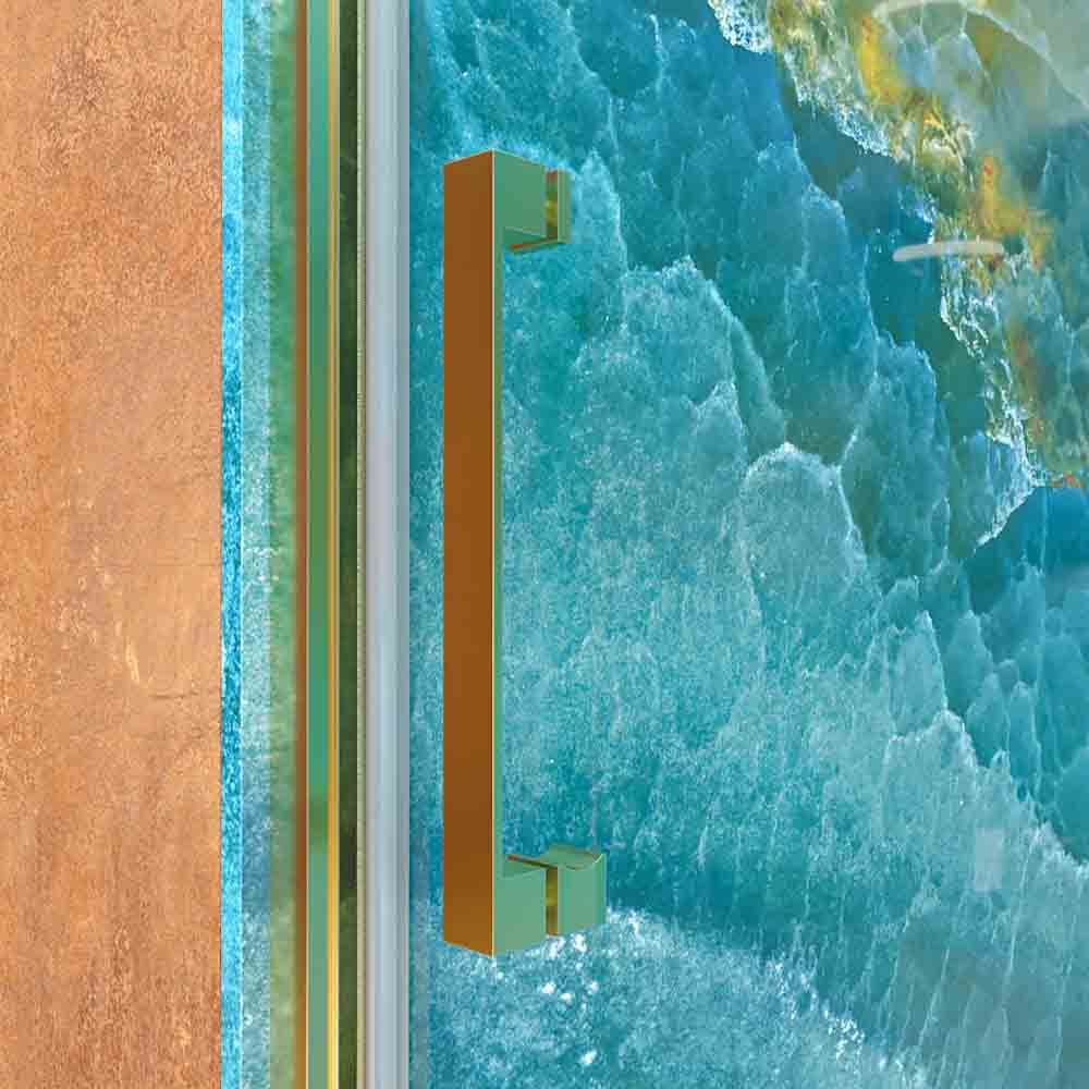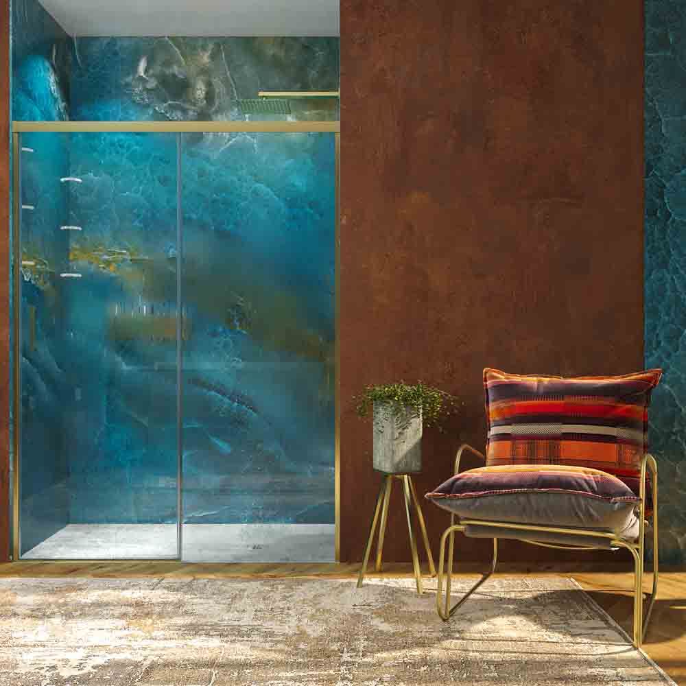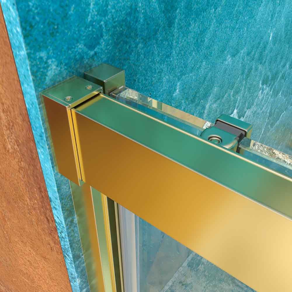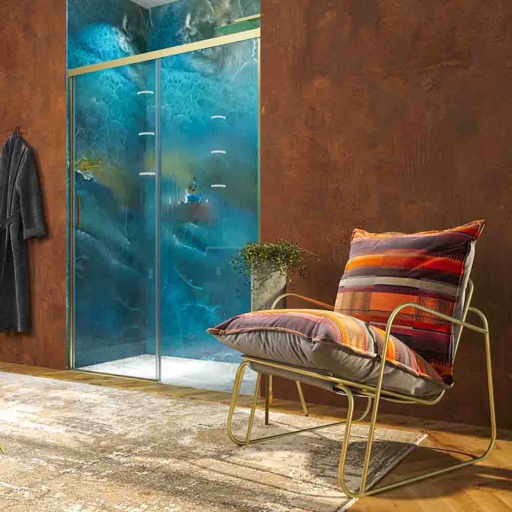 Precisamente su elegante perfilería de aluminio es otro de sus atractivos ya que, ahora , está disponible en termo lacado oro mate, muy de moda con el auge de los baños de estilo industrial.