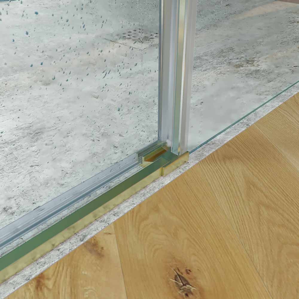 La mampara BASIC en su composición más sencilla, como frontal de dos hojas, una fija y otra móvil, tiene una cómoda apertura corredera y su puerta puede liberarse del carril para limpiar fácilmente la mampara. No obstante, dada su estética súper depurada, no lleva guía inferior y los accesorios como el tirador, van a juego con la perfilería.
