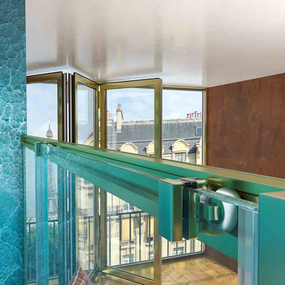 - Material/Color Perfilería: Aluminio anodizado termo lacado oro mate