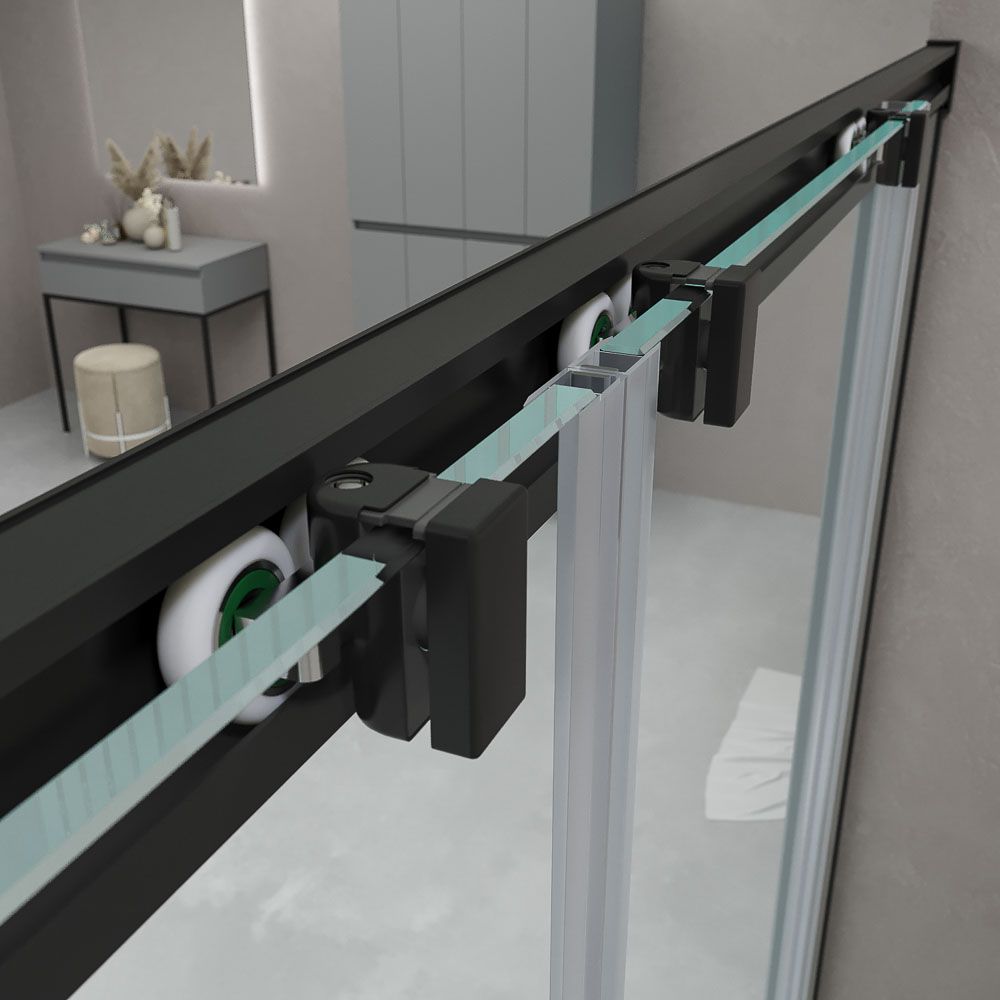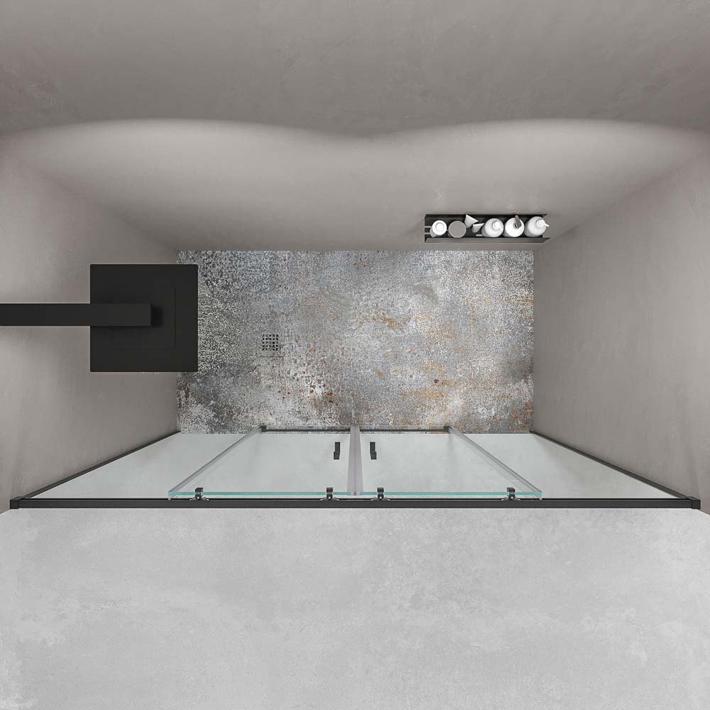 La mampara de ducha BASIC en su composición más sencilla, como frontal de cuatro hojas, dos fijas y otras dos móviles con cierre central, tiene una cómoda apertura corredera y sus puertas puede liberarse del carril para limpiar fácilmente la mampara. No obstante, dada su estética súper depurada, no lleva guía inferior y los accesorios como el tirador, van a juego con la perfilería.