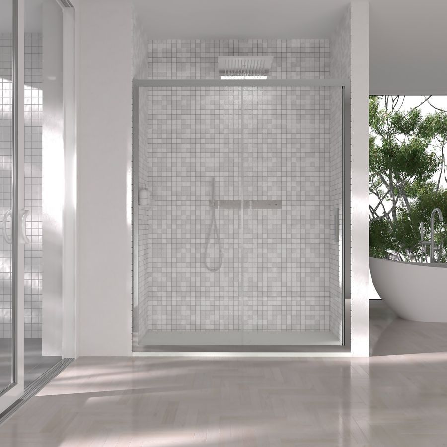 La mampara de ducha FRAME lleva cristal templado de seguridad de 6 mm de grosor, perfilería de aluminio en acabado cromo (muy elegante y resistente al agua y la humedad), anti-cal incluido de serie con cinco años de garantía mínima, rodamientos dobles, tirador de latón cromado, un sistema que libera las hojas correderas de su carril para mejor limpieza y la posibilidad de encargarse a medida si no recoge las dimensiones de tu plato de ducha.