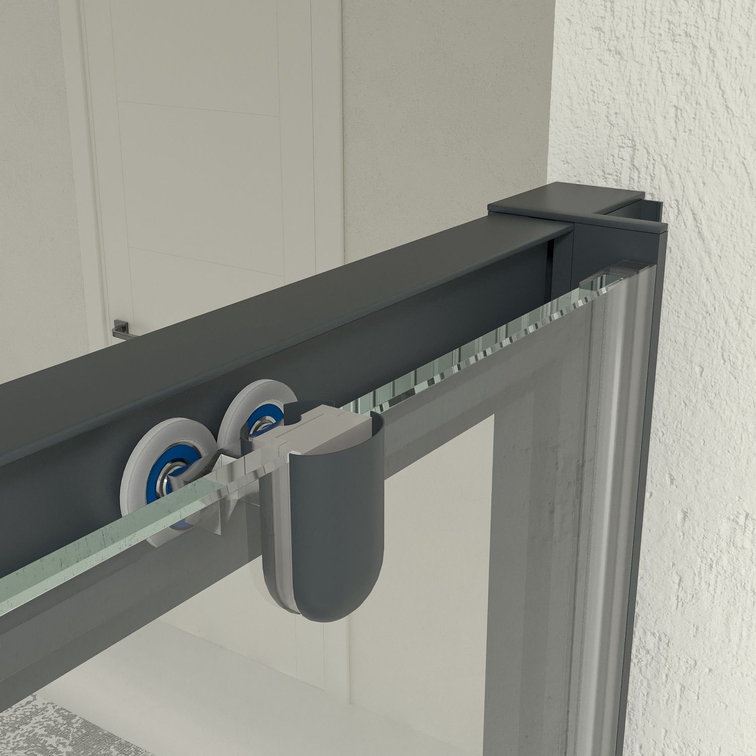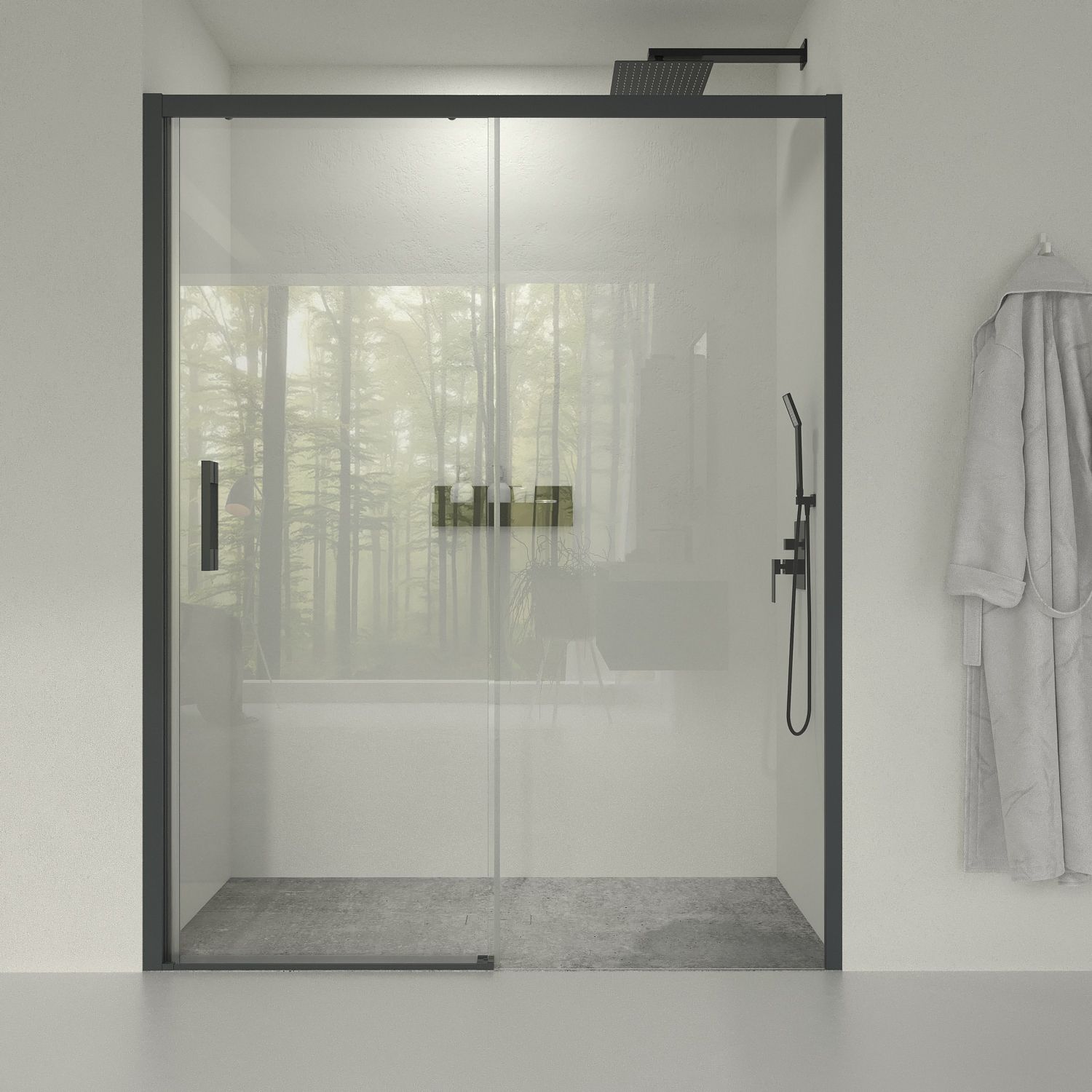 Mampara de ducha frontal LINEA1 fijo -1 puerta corredera. Sin perfil inferior. Acabado GRAFITO