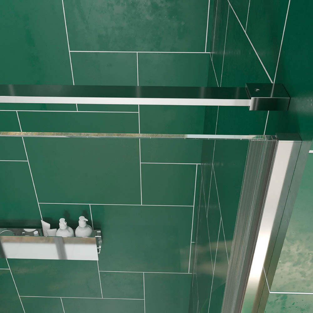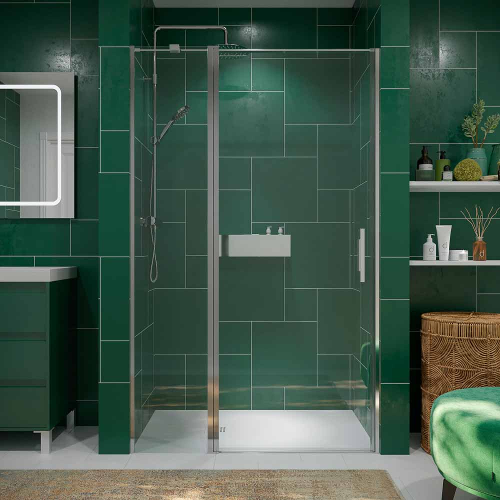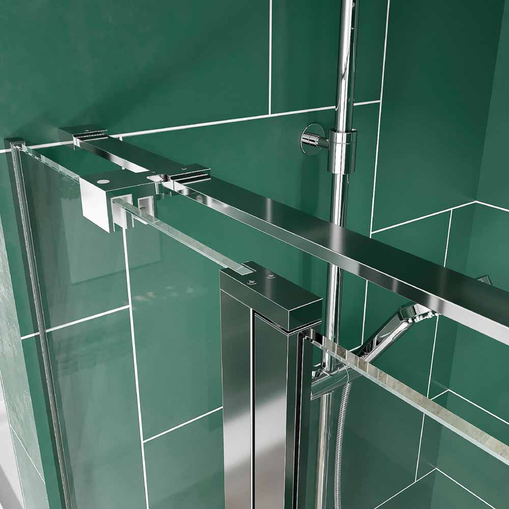 Mampara de ducha frontal OPEN 1 fijo – 1 puerta abatible a medida acabado. CROMO BRILLO