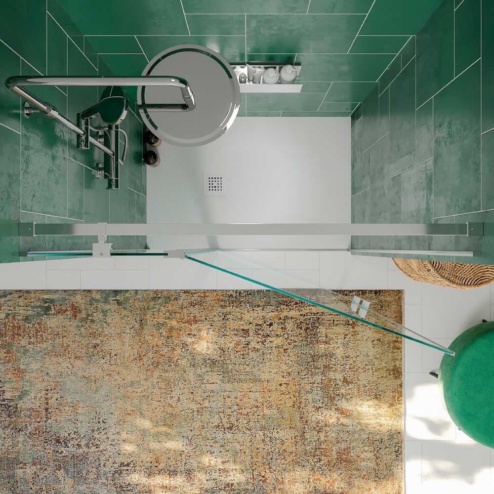La mampara frontal de ducha OPEN solo lleva perfiles de aluminio en los lados, nada por arriba ni por abajo. Es un conjunto sencillo y discreto, que hará crecer la estancia con sus cristales templados de 6 mm.