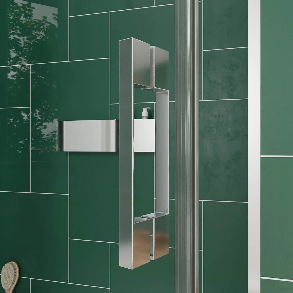 Su tirador minimalista combina con el aspecto depurado de la mampara, que incorpora un brazo de sujeción a pared para conseguir que el fijo frontal no cimbree.