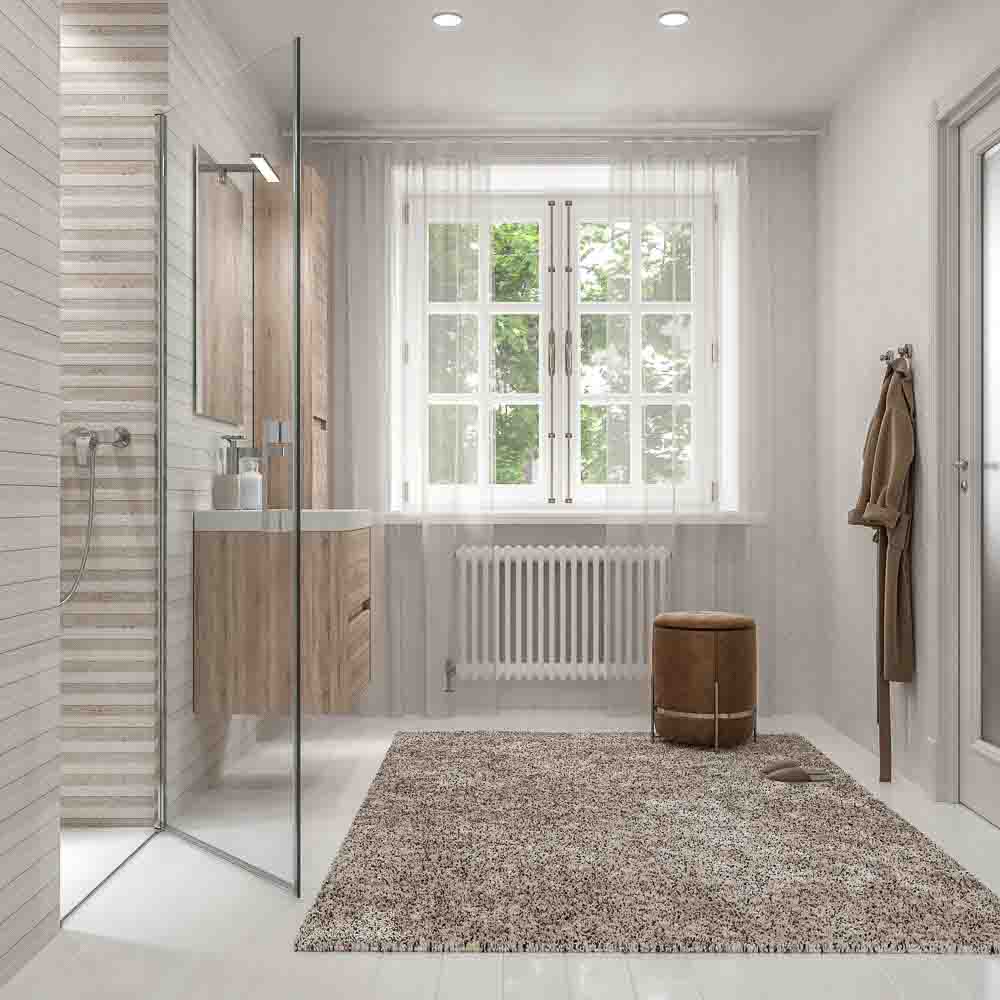 - Mampara sin perfil inferior pero con máxima estanqueidad para que no se salga el agua.