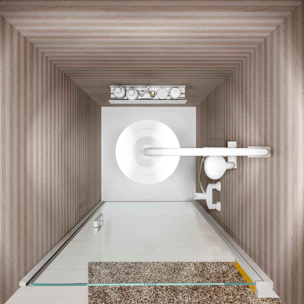 - Mampara sin perfil inferior pero con máxima estanqueidad para que no se salga el agua.
