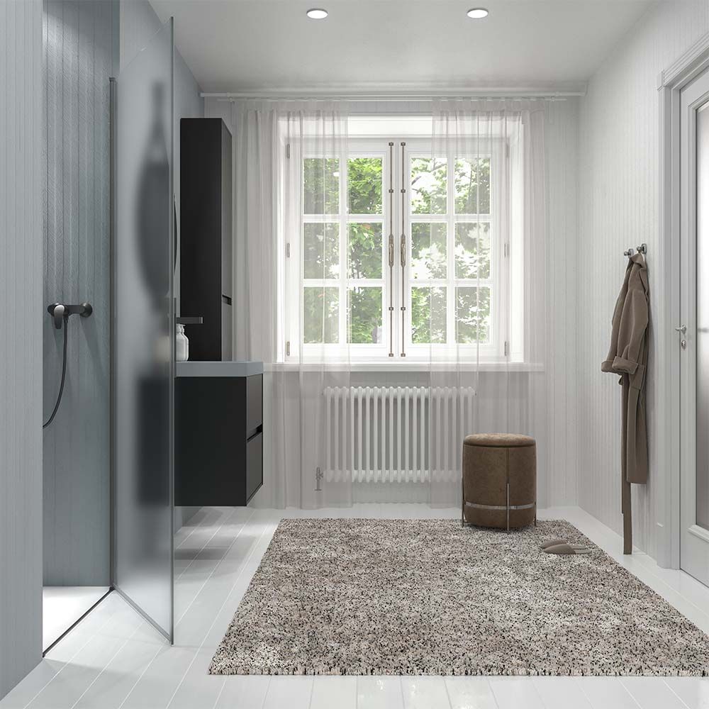 En cuanto a otras características personalizables de la mampara de ducha OPEN, puedes elegir el color y acabado de la perfilería: lacado blanco mate, negro mate, cromo mate ,cobre mate, oro mate, oro rosa mate; así como el acabado del cristal: transparente, con serigrafía, a color, mate, translúcido, con cristal efecto espejo… (consulta las variaciones de precio).