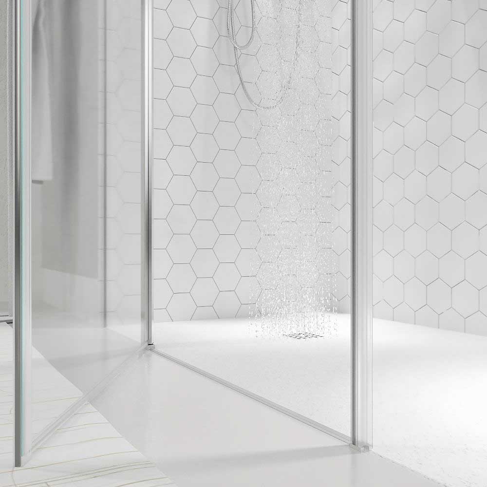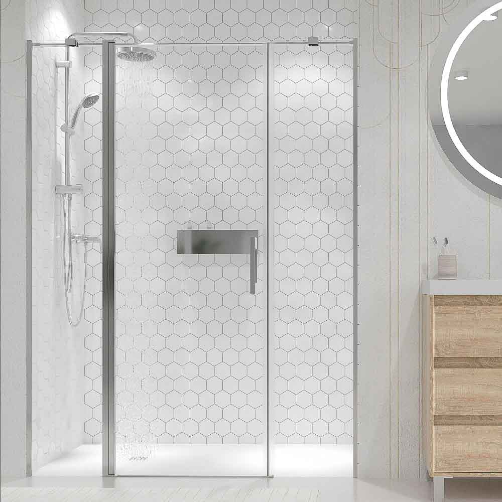 - Frontal de ducha compuesto por una puerta abatible con un pequeño fijo frontal. Reversible (indícanos la posición de anclaje).
