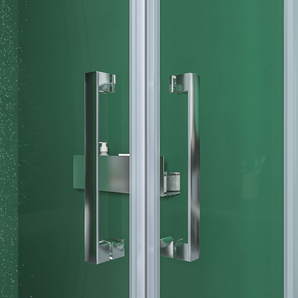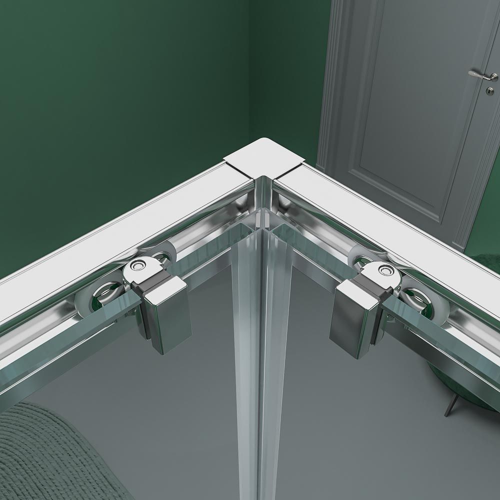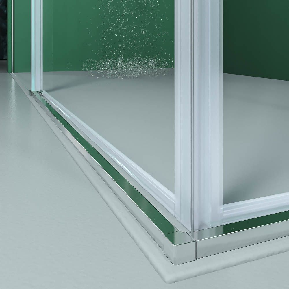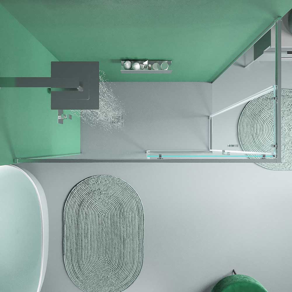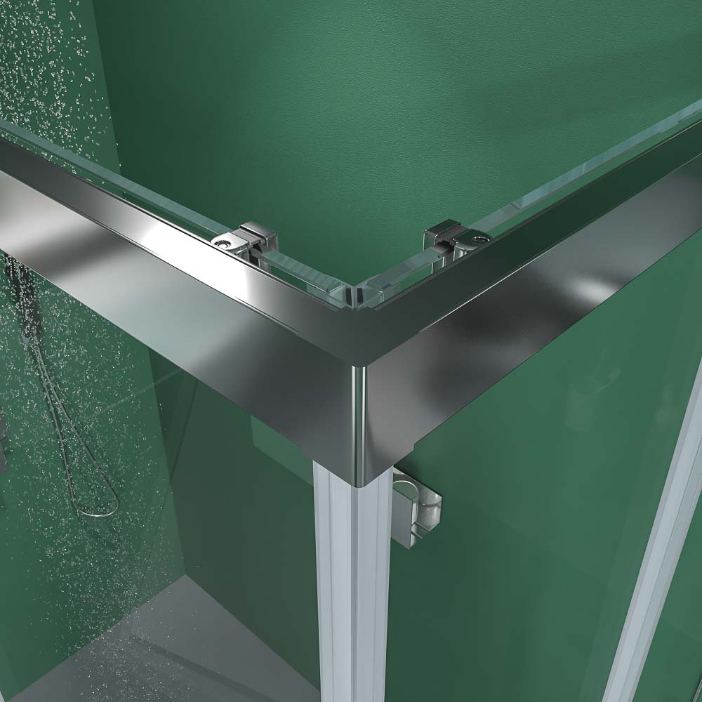 La mampara de ducha angular BASIC se compone de dos hojas fijas y dos correderas, con un acceso por el vértice y posibilidad de instalarla con apertura a izquierdas o derechas. Esta mampara de ducha estándar se entrega en 2-3 días y está disponible en un amplio rango de medidas: de 68-100 a 68-100 cm por lado.
