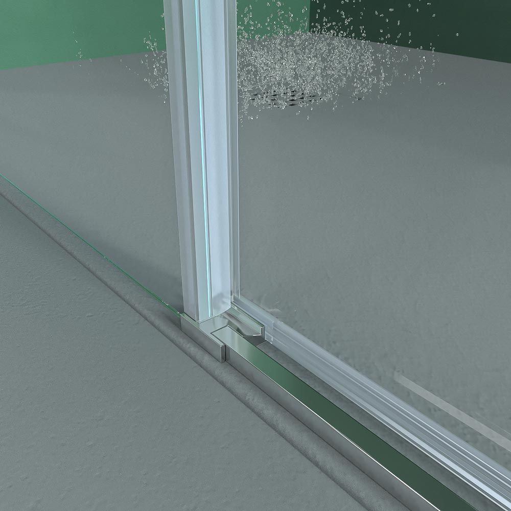 La mampara de ducha angular BASIC lleva cuatro hojas de vidrio templado de 6 mm de espesor (por el momento solo disponible en acabado incoloro únicamente), no incluye guía inferior y sí anti-cal de serie. Además, entre las novedades que incorpora este modelo están unos perfiles laterales más estrechos y de diseño depurado, así como un sistema de montaje muy sencillo para que cualquier cliente pueda colocar su nueva mampara en casa si lo desea.