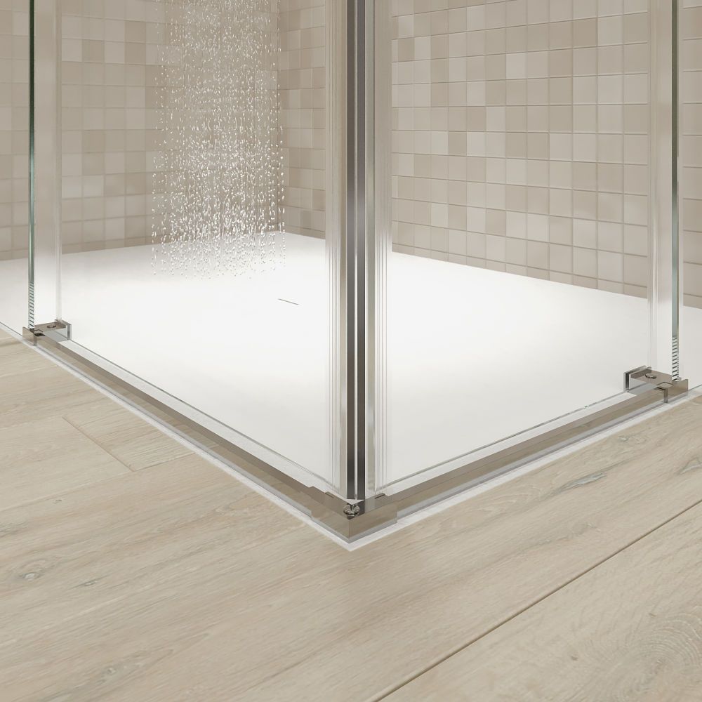 La ausencia de perfil inferior deja libre de resaltos el acceso a la ducha y asegura una entrada sin riesgo de caídas.