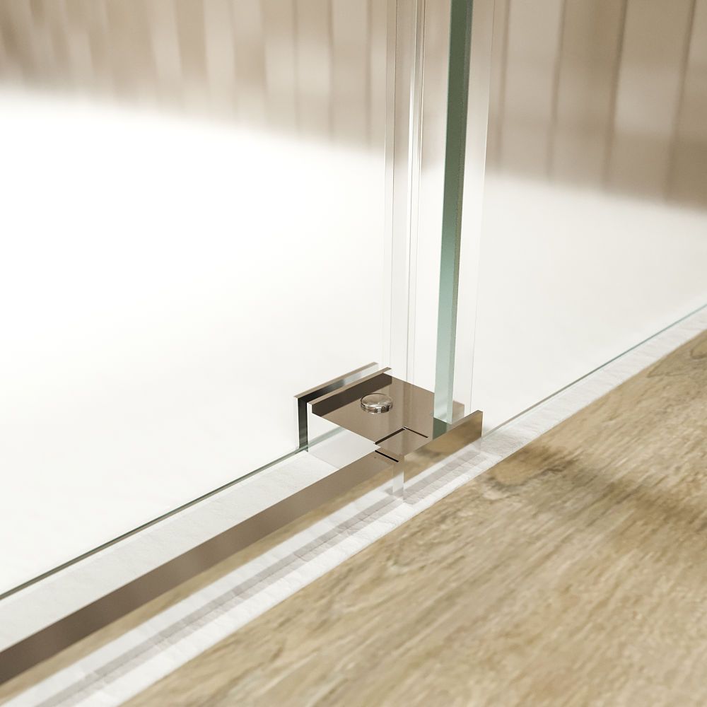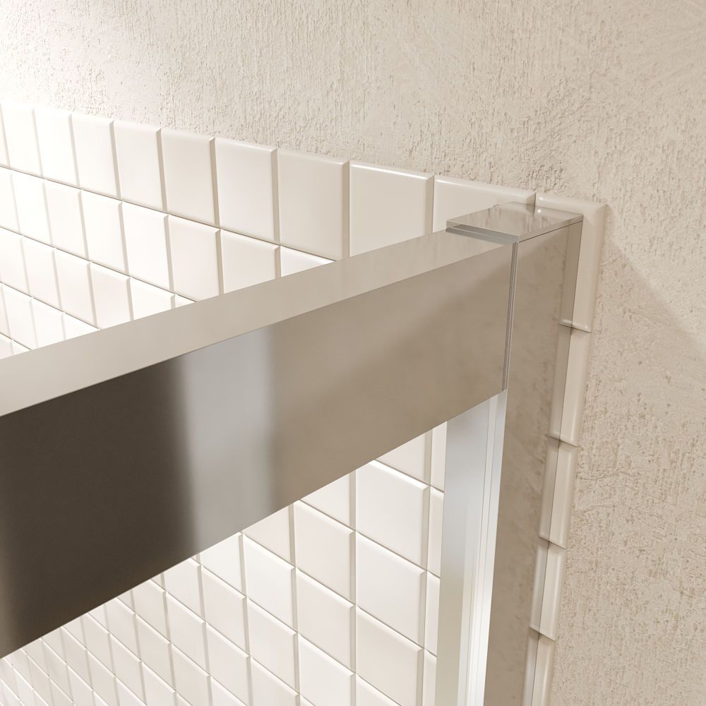 La perfilería de esta mampara de baño es de aluminio anodizado cromo  brillo, lo que, junto a las líneas depuradas y a su tirador a juego, confiere una sensación de amplitud y luz ante la que es imposible resistirse.