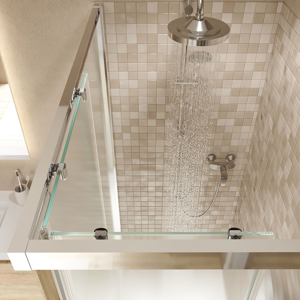 La mampara de ducha angular FLARE tiene vidrio templado transparente de seguridad de 6 mm. Visualmente ligero pero siempre seguro.
