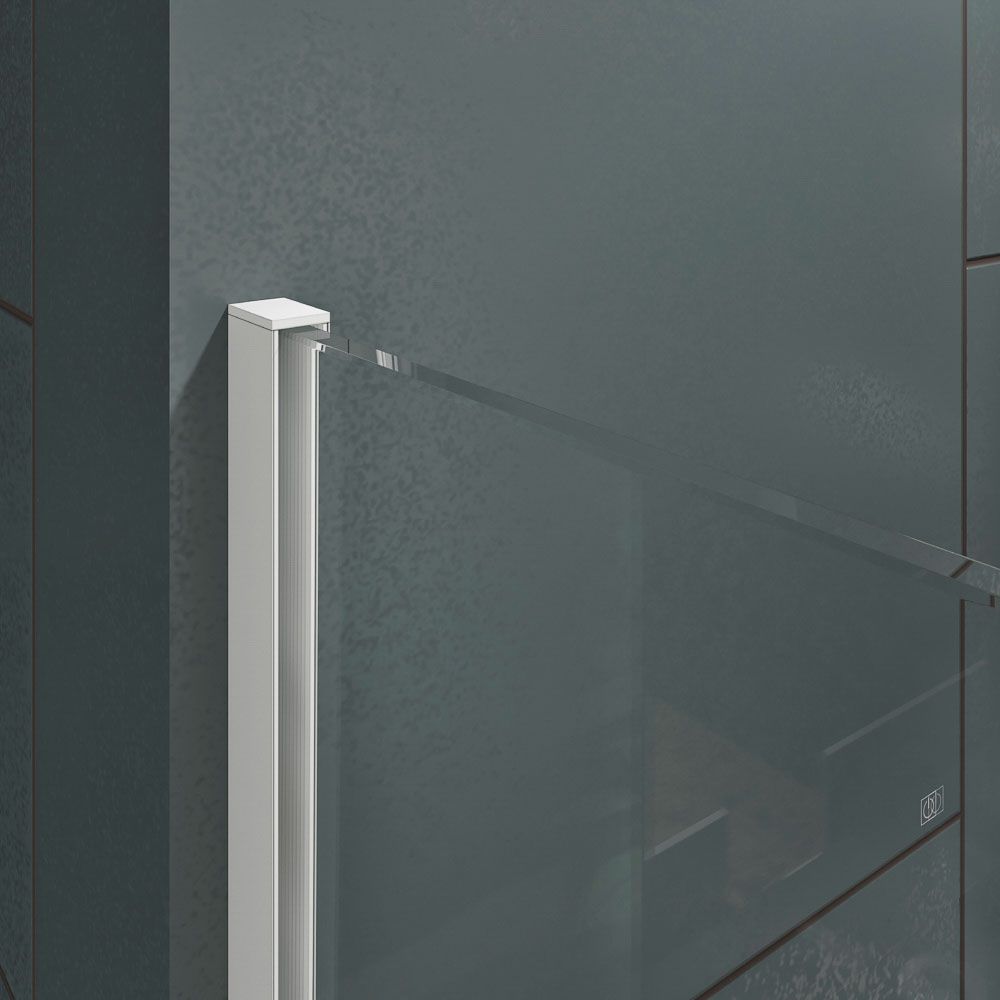 - La puerta abatible de la mampara de ducha OPEN puede medir de 50 a 80 cm de ancho (con perfiles de compensación de 1,5 cm).