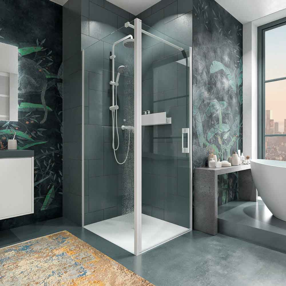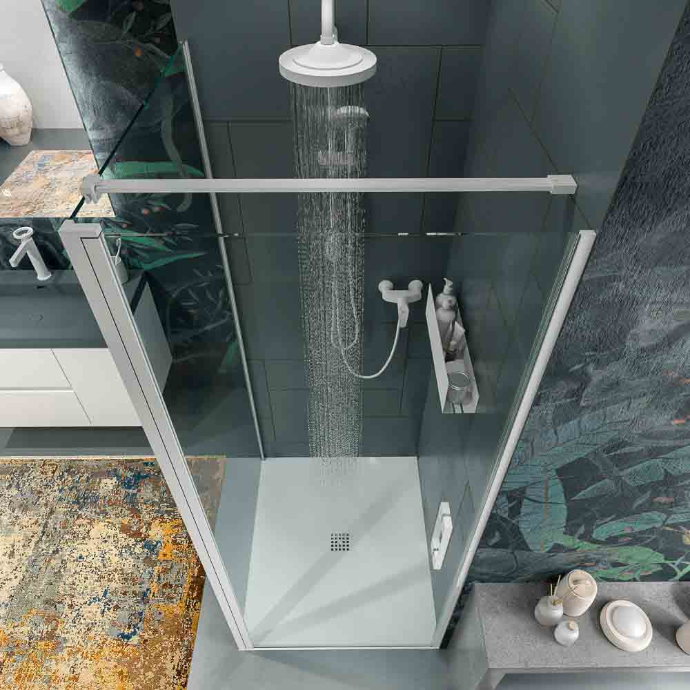 - Frontal de ducha compuesto por una puerta abatible con un lateral fijo. Reversible (indícanos la posición de anclaje).