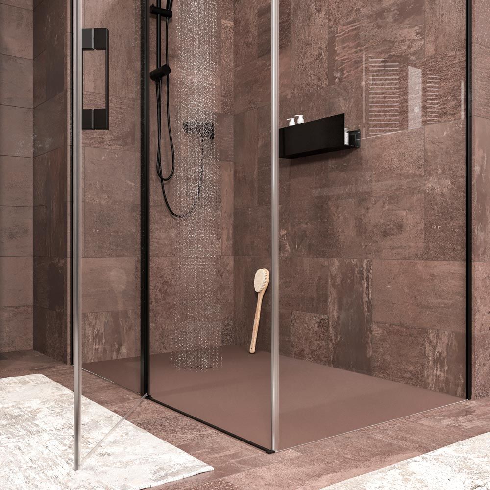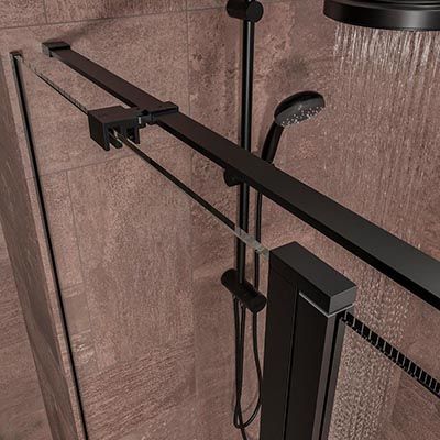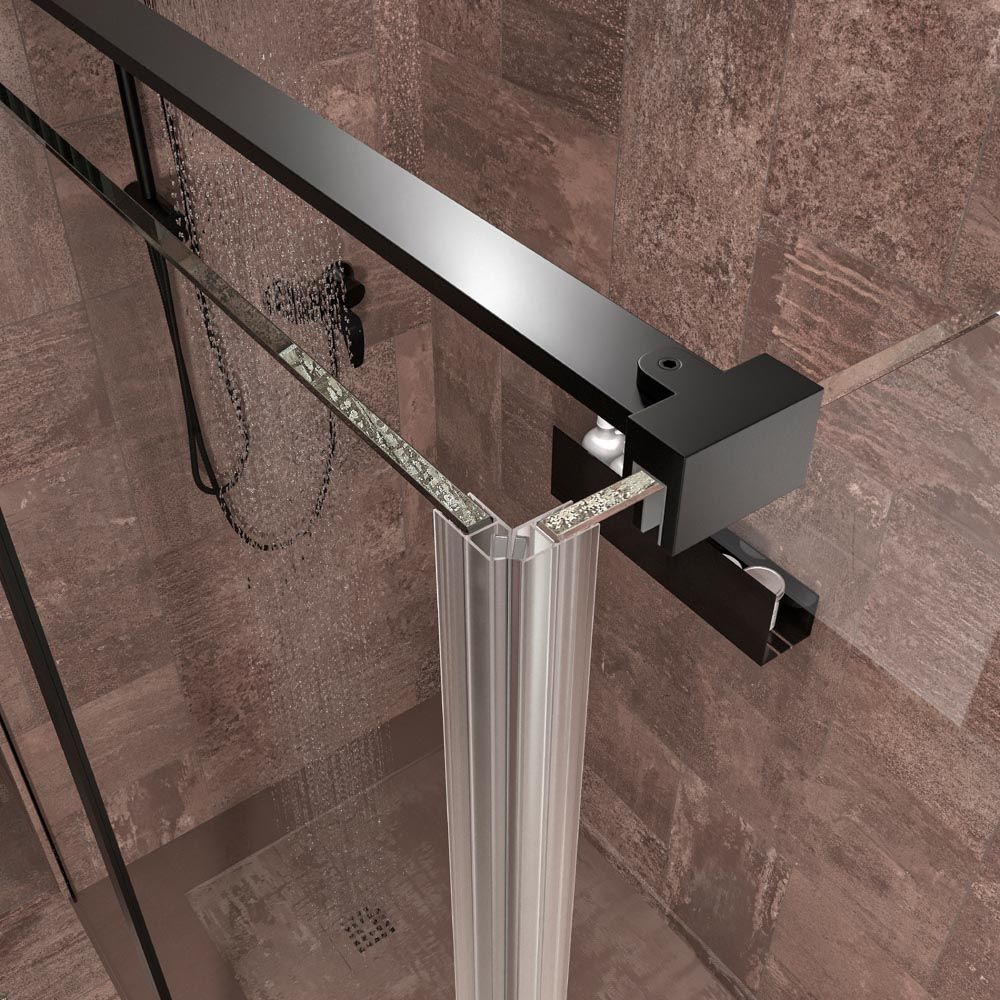 Mampara de ducha rectangular OPEN 2 fijos – 1 puerta abatible a medida. NEGRO MATE