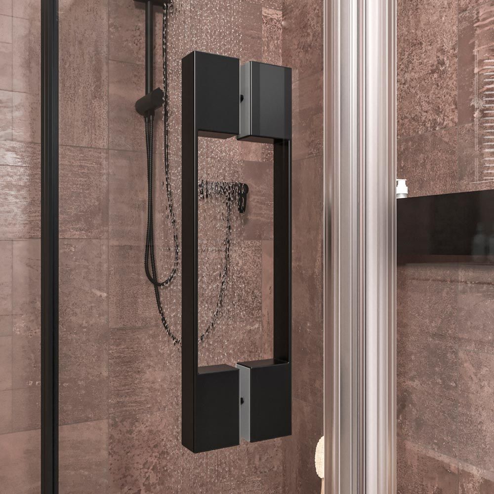 Sé el primero en valorar “Mampara de ducha rectangular OPEN 2 fijos – 1 puerta abatible a medida. NEGRO MATE”