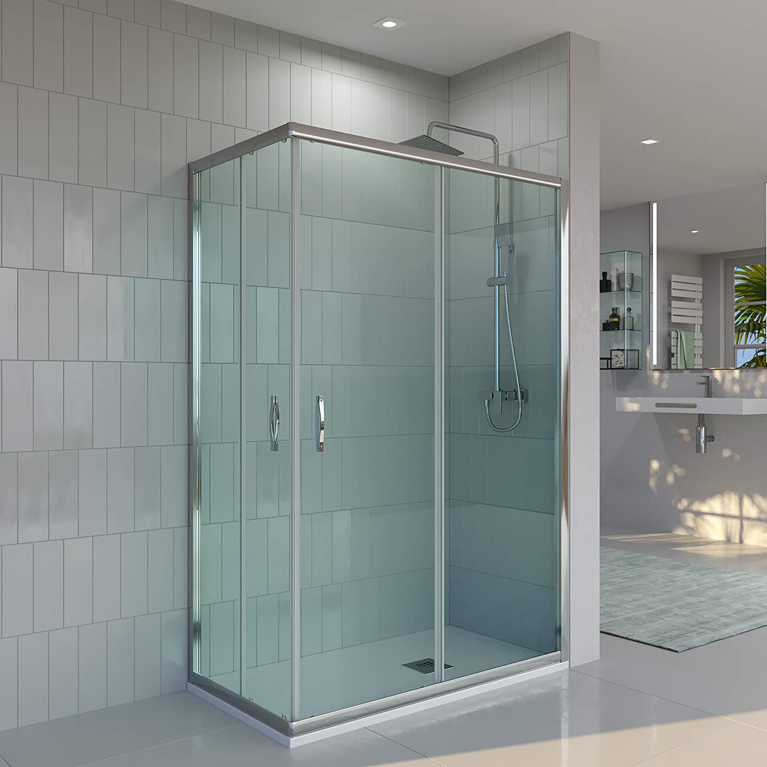 Su vidrio templado tiene 6 mm de grosor y acabado transparente y la perfilería es de aluminio anodizado plata brillo, así como los accesorios. Al componerse de dos fijos, y dos puertas correderas, los rodamientos dobles de la mampara Tempo se desgastarán menos y el conjunto durará más como nuevo.