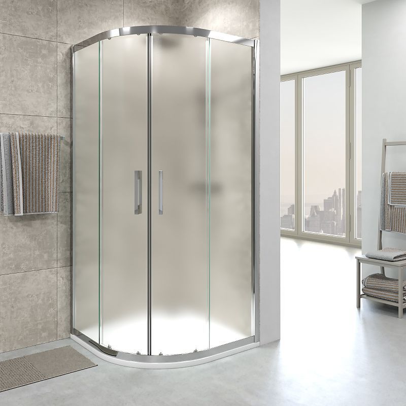 Mampara de ducha semicircular GLISS 2 fijos-2 puertas correderas cristal OPACO. Con tratamiento anti-cal. Acabado CROMO BRILLO