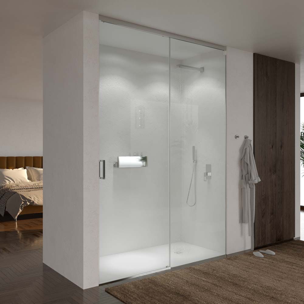- Modelo: Frontal 1 fijo – 1 puerta corredera . Reversible.