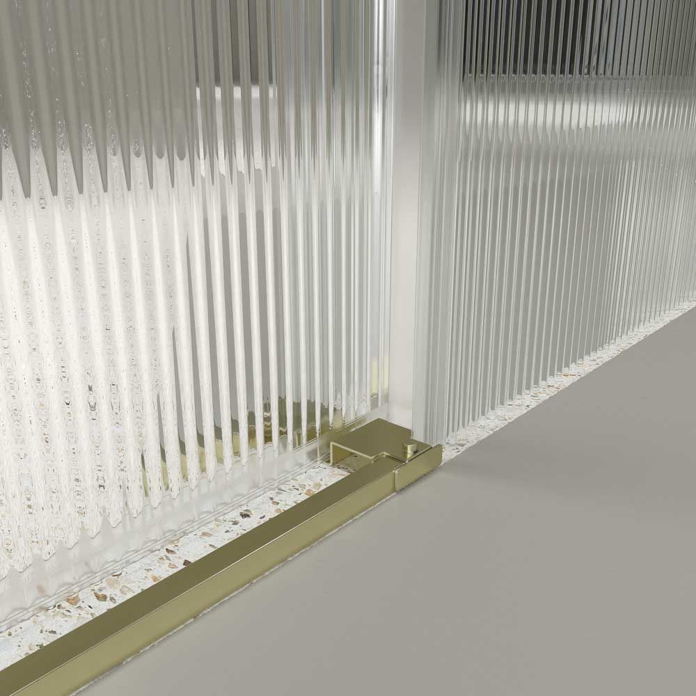 - Esta mampara también dispone de un sofisticado mecanismo liberador de la hoja corredera de la guía inferior para acceder a una limpieza más cómoda
