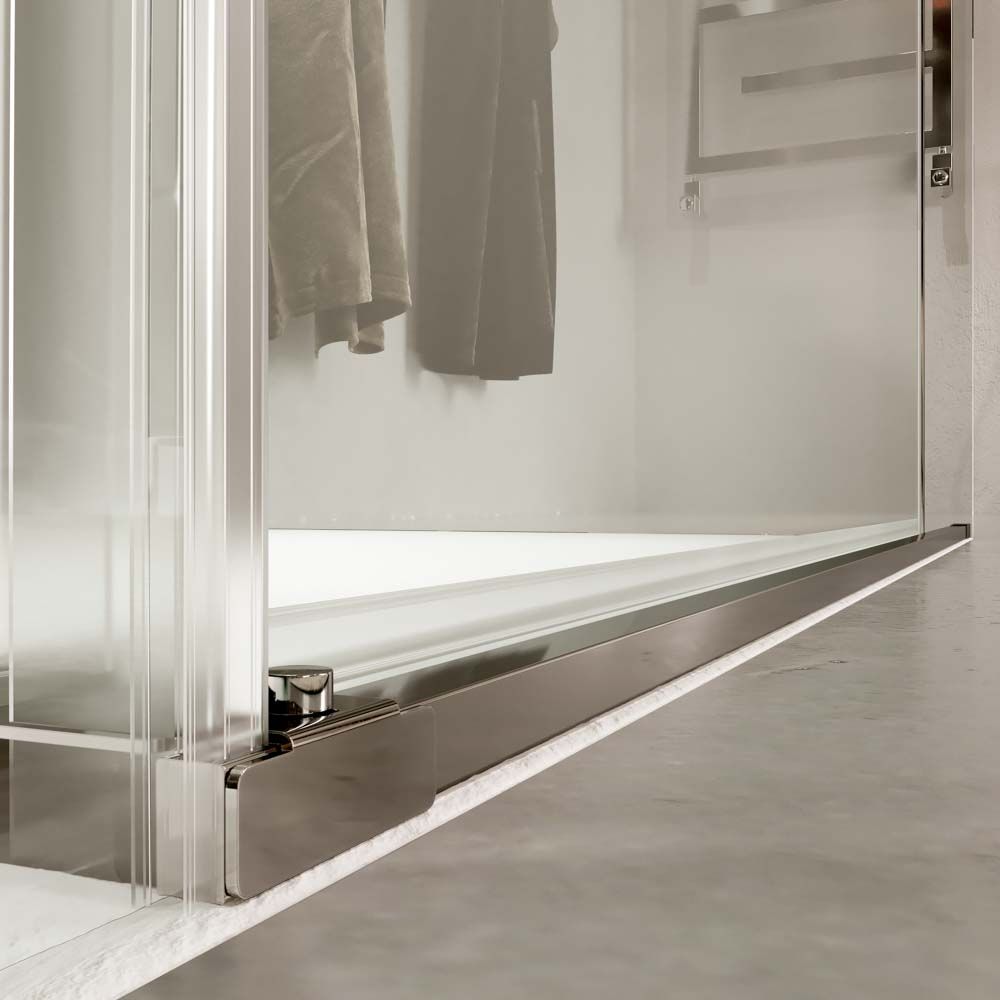 - Esta mampara también dispone de un sofisticado mecanismo liberador de la hoja corredera de la guía inferior para acceder a una limpieza más cómoda