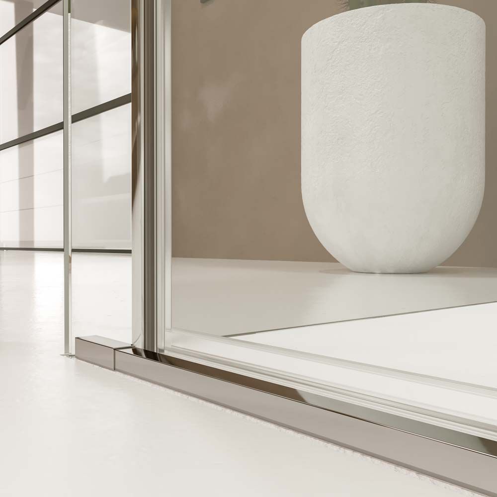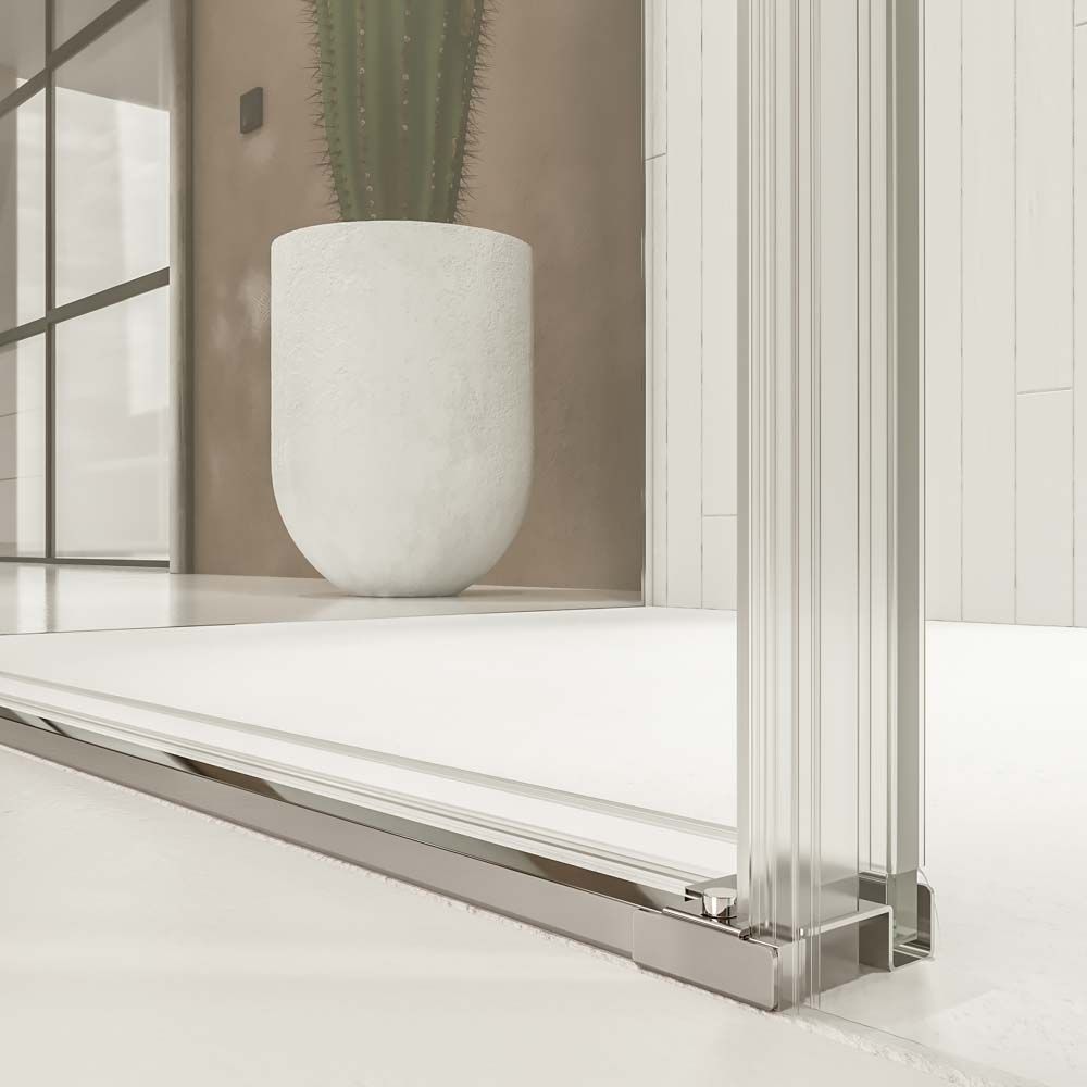 Además es una mampara sin perfil inferior. Esto significa que no necesita estructura o marco en la parte inferior, permitiendo una entrada a la ducha, cómoda y sin escalones. También da un aspecto mas moderno y minimalista.
