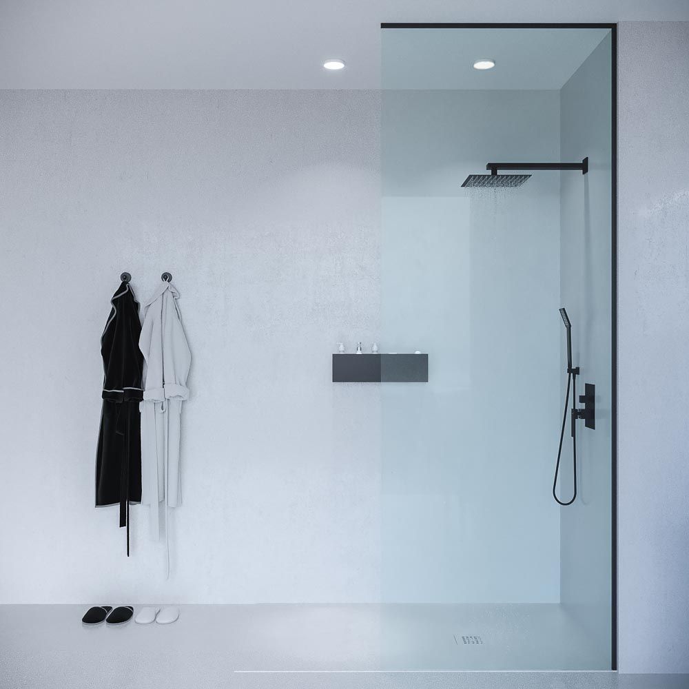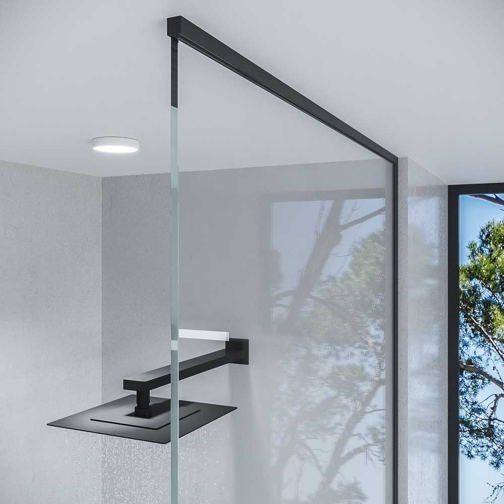 ¿La ves o no la ves? Te preguntamos porque la mampara de ducha fija de 8mm  ZEN fabricada a techo es prácticamente invisible.